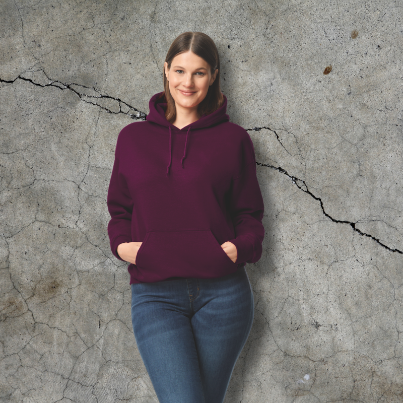 Divslāņu kapuce ar tonim pieskaņotu auklu un ietilpīga kenguru tipa kabata piešķir hūdijam klasisku izskatu un praktiskumu. Rievotās piedurkņu un jostas daļas malas ar elastānu nodrošina lielisku piegulšanu un atjauno formu pēc valkāšanas.