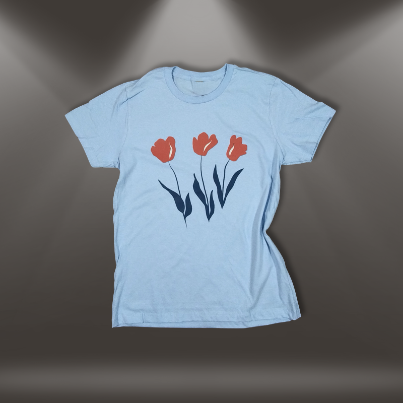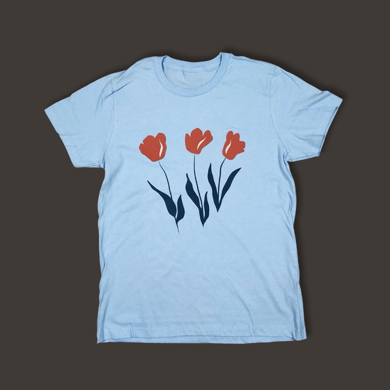 Grafiska ziedu ilustrācija — trīs stilizētas tulpes.